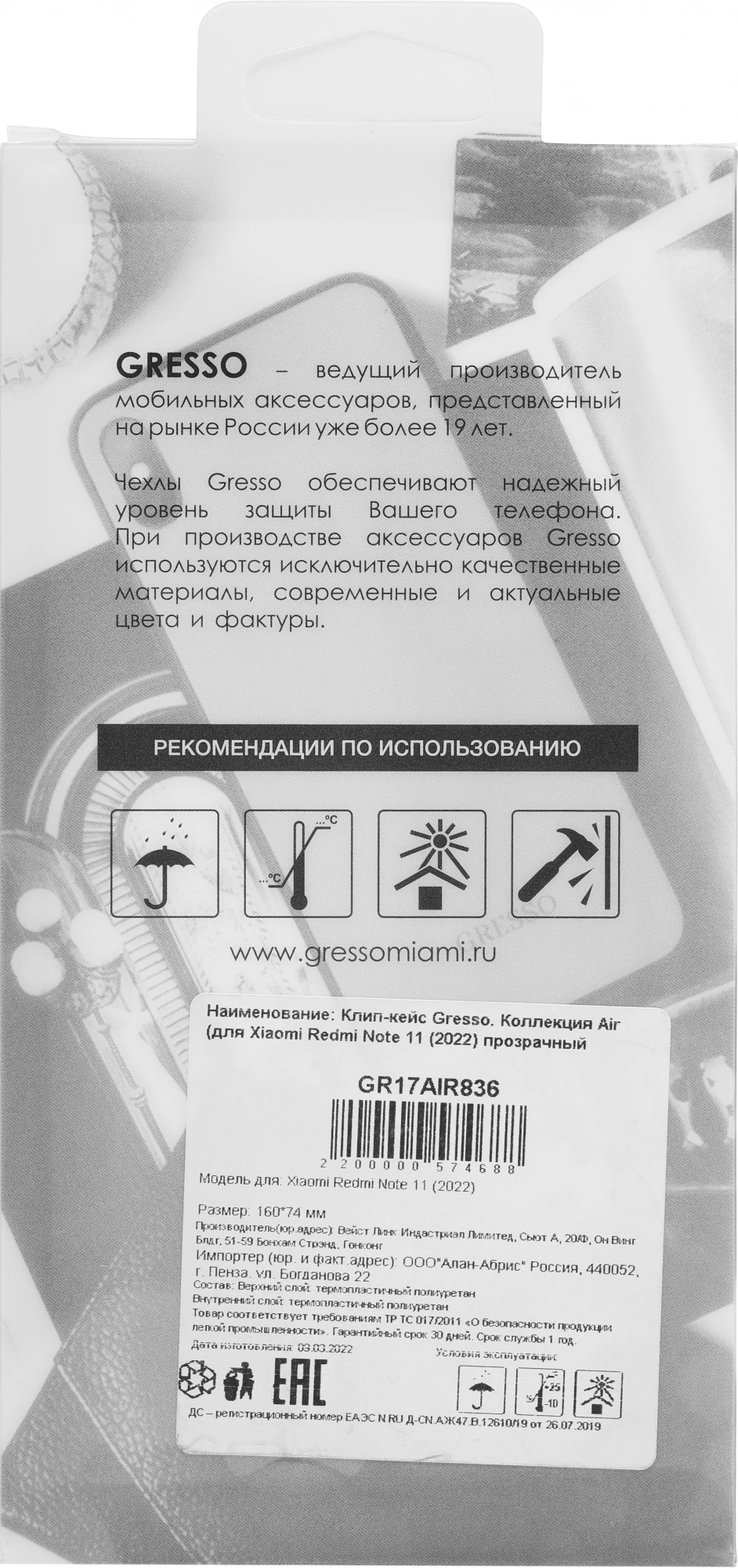Чехол Gresso GR17AIR836 для Xiaomi Redmi Note 11 Air прозрачный