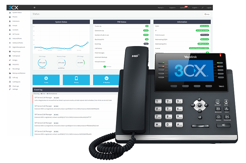 - 3CX – программная АТС, основанная на открытых стандартах, которая работает с распространенными IP-телефонами, SIP-операторами и шлюзами. Представляет собой завершенное решение объединенных коммуникаций, включая веб конференции, индикацию статусов, софтфоны, клиенты для смартфонов и многое другое.