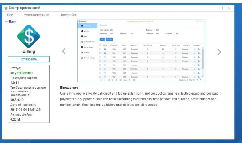 - Приложение Billing для IP-ATC Yeastar — гибкая система тарификации в реальном времени.