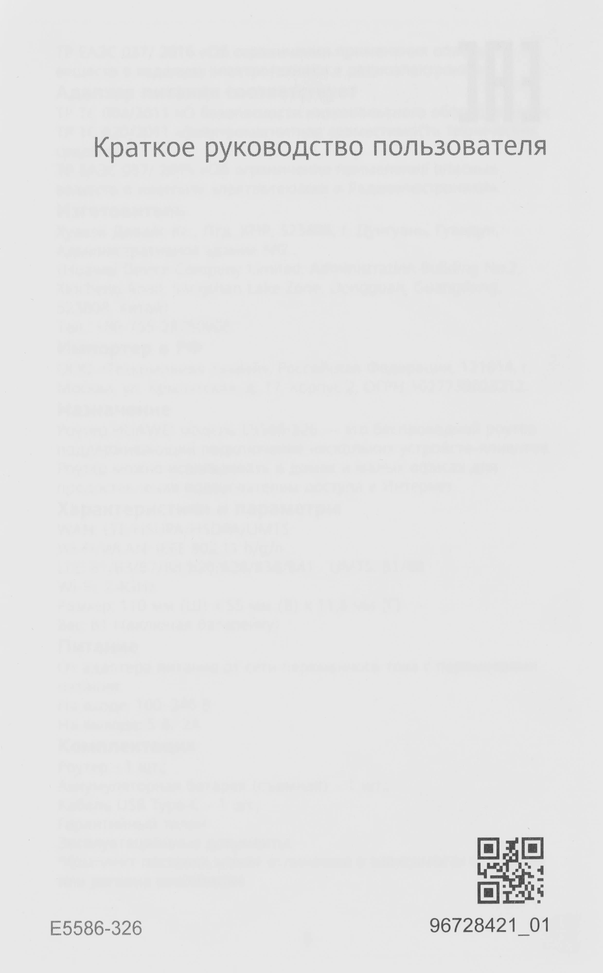 Модем 3G/4G Huawei E5586-326 USB Type-C Wi-Fi Firewall +Router внешний черный [51071VKC]