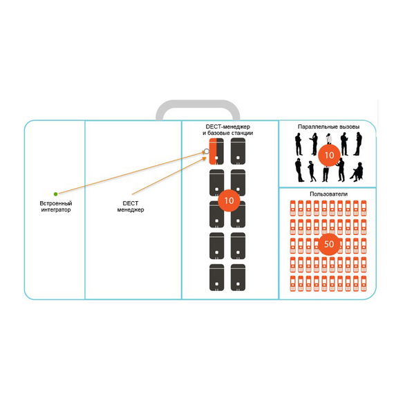 • Синхронизация по DECT, синхронизация по LAN или смешанный режим