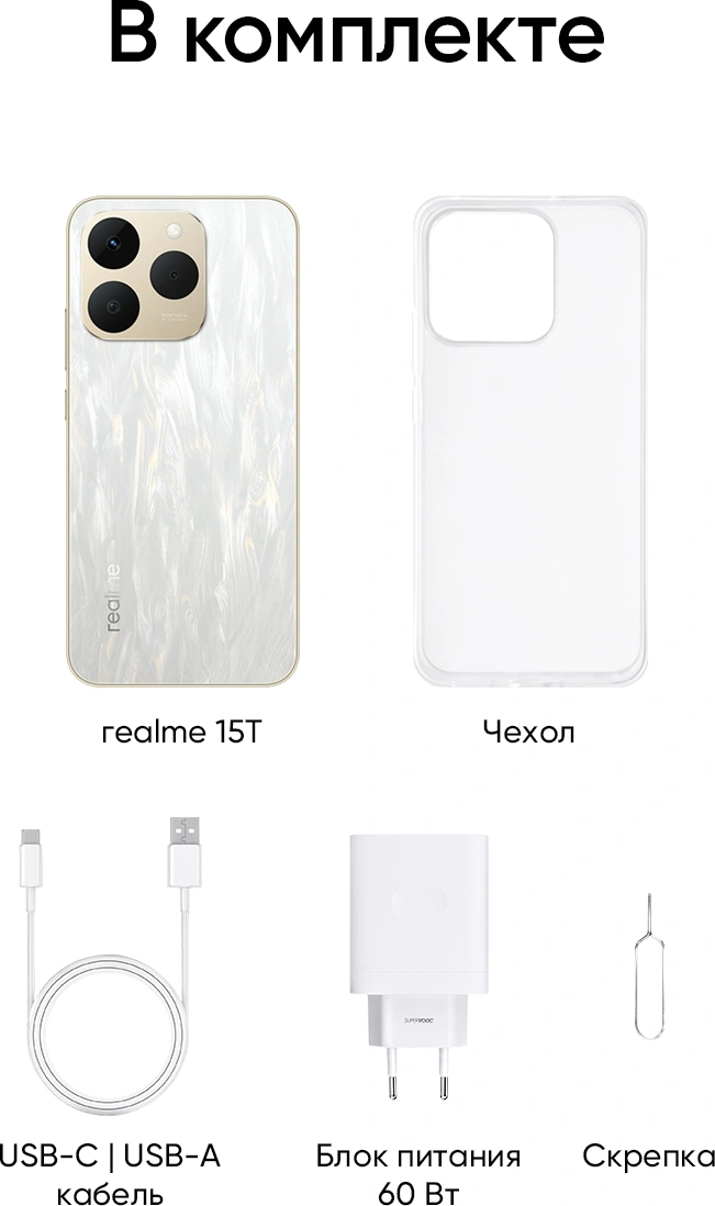 Смартфон Realme RMX5111 15T 128Gb 8Gb белый 3G 4G 6.78" 1264x2780 Android 15 50Mpix 802.11 a/b/g/n/ac/ax/be NFC GPS GSM900/1800 GSM1900 [6941764474918]