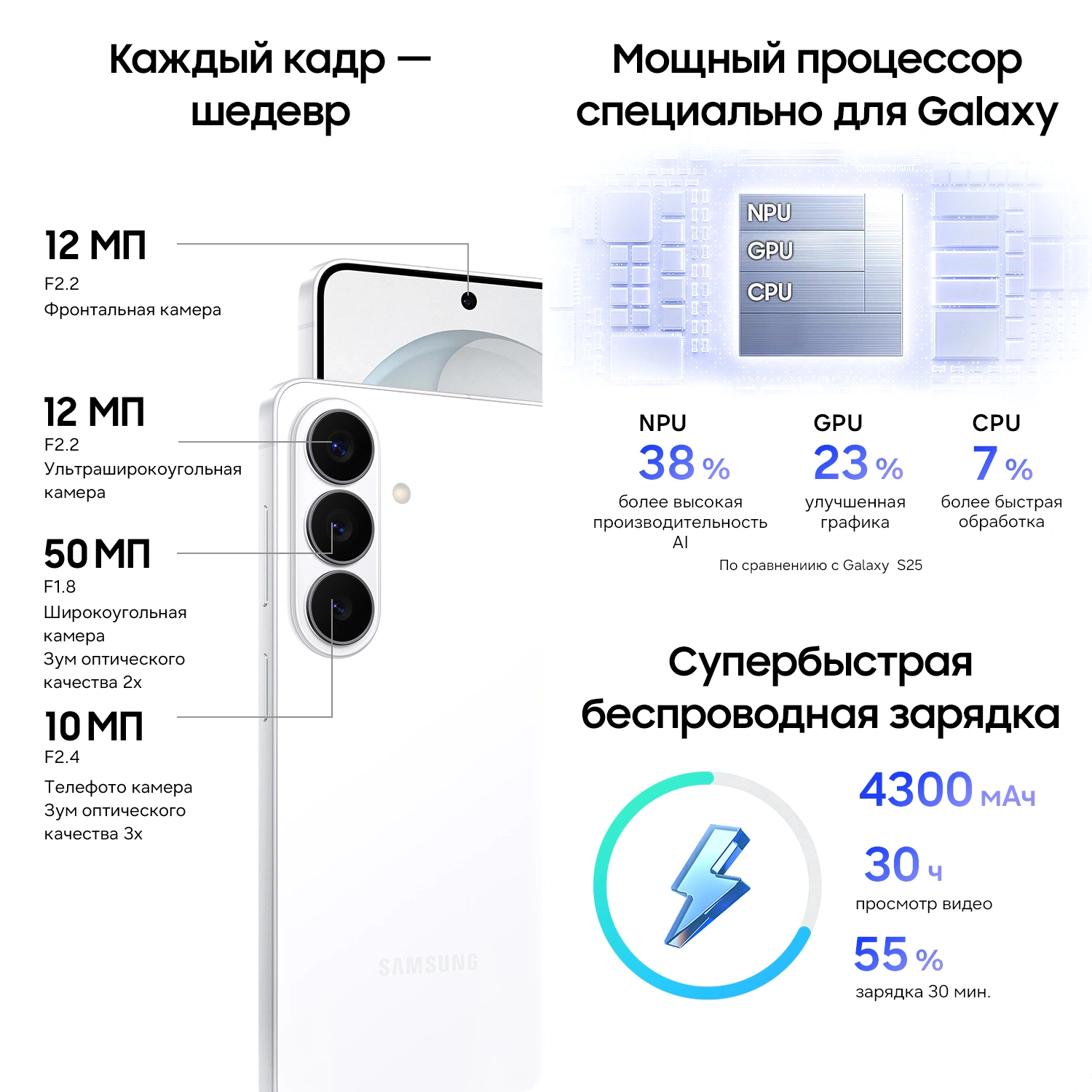 | Особенности | Galaxy Al, Bluetooth с поддержкой слухового аппарата |