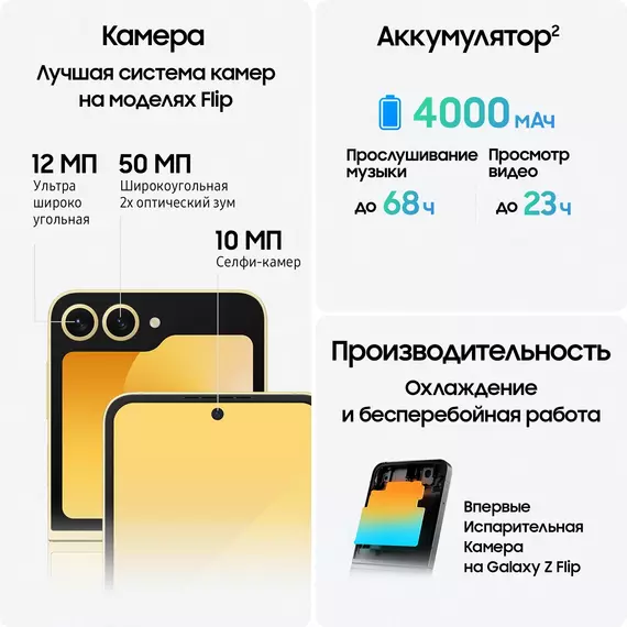 Особенности Samsung SM-F741B Galaxy Z Flip 6 5G 256/12Gb желтый [SM-F741BZYGCAU]