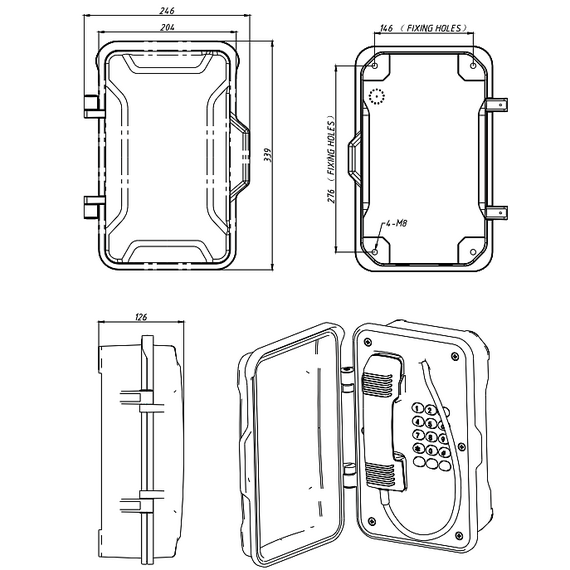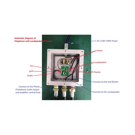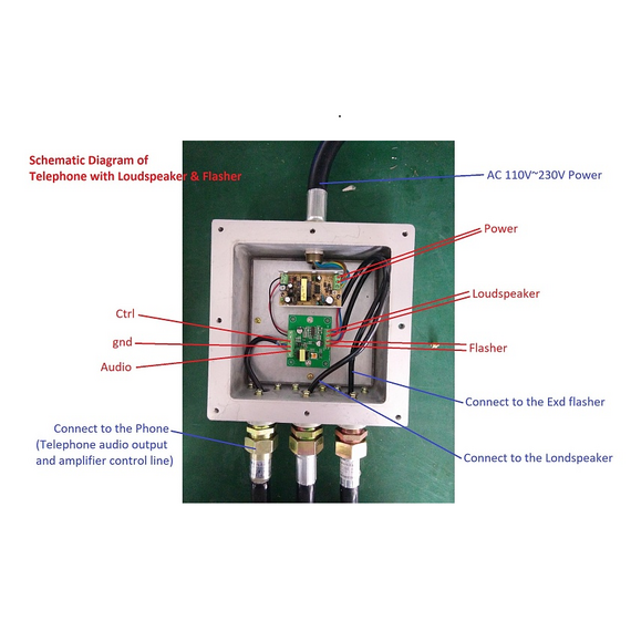 - Всепогодный взрывозащищенный промышленный SIP-телефон в комплекте с взрывозащищенными горном и проблесковым маяком. Изготовлен из литого под давлением алюминия с антикоррозионным эпоксидным порошковым покрытием и имеет степень защиты от окружающей среды IP67. Рекомендован для использования в метро, горнодобывающей промышленности, тоннелях, заводах, электростанциях, железных дорогах и т. д.
