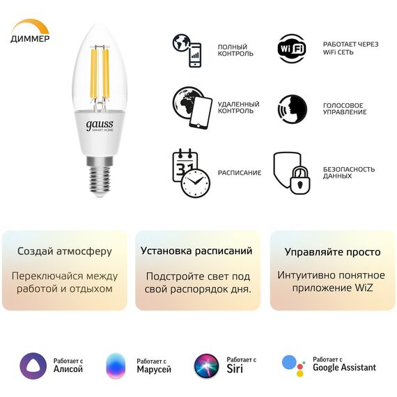 Описание Gauss Smart Home C35 E14 [1230112]