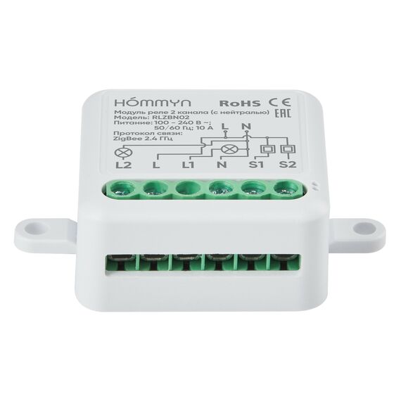 Модуль реле HOMMYN RLZBN02 zigbee 2 канала (с нейтралью)