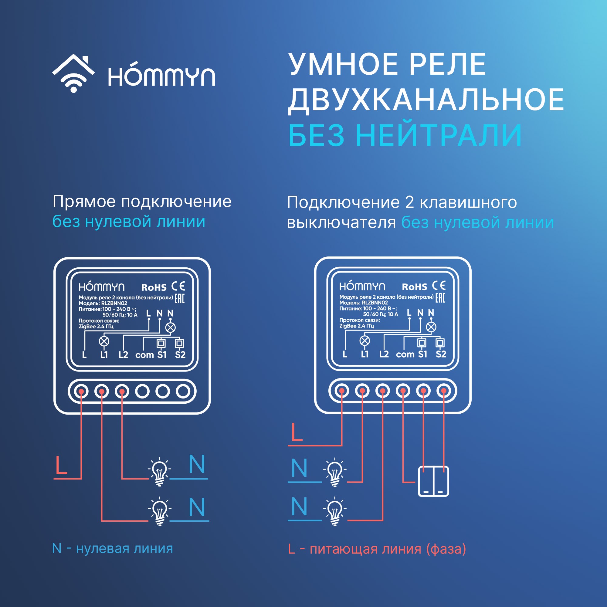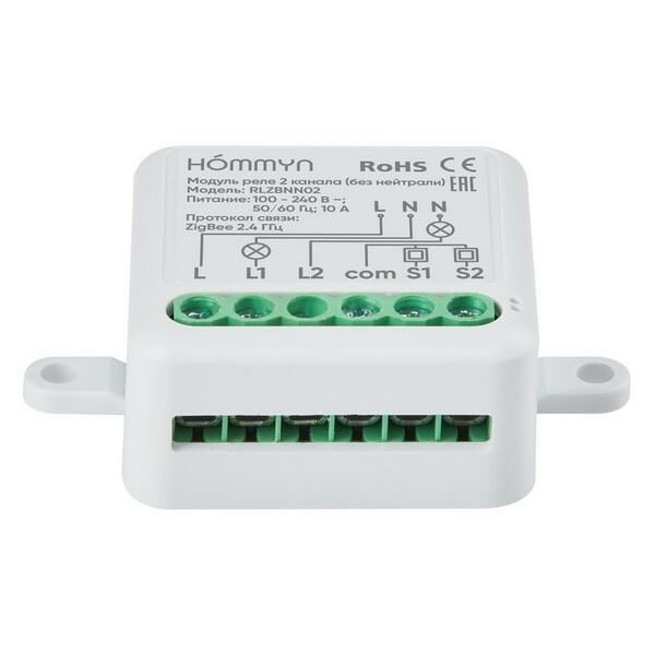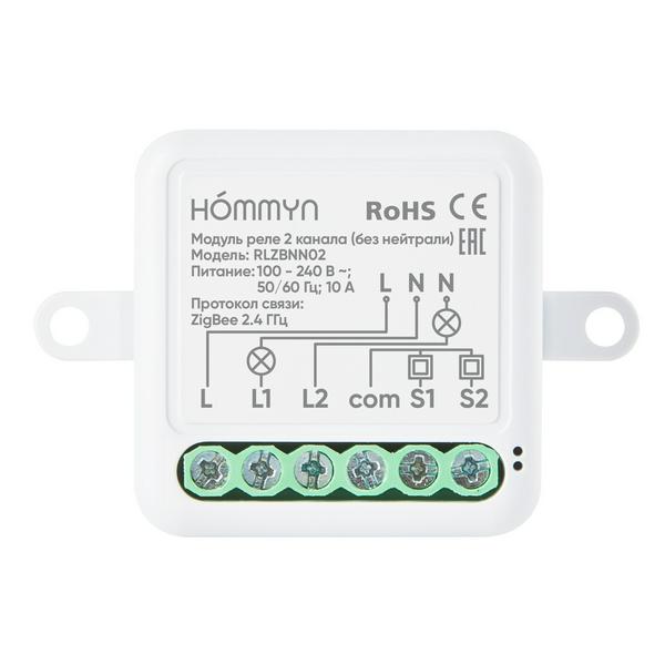 Модуль реле HOMMYN RLZBNN02 zigbee 2 канала (без нейтрали)