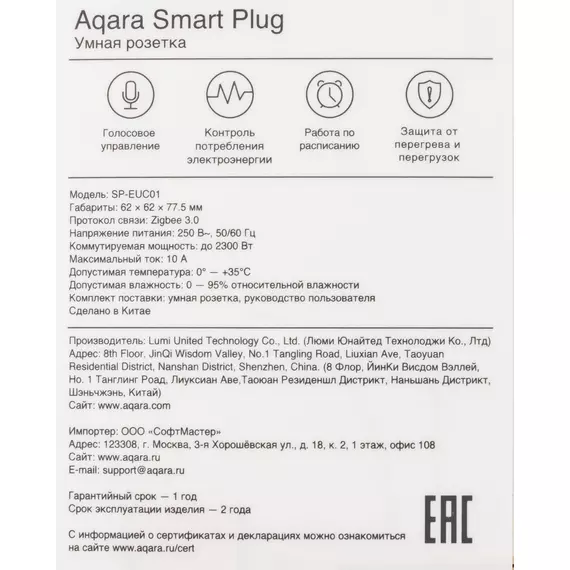 Описание Aqara Smart Plug EU [SP-EUC01]