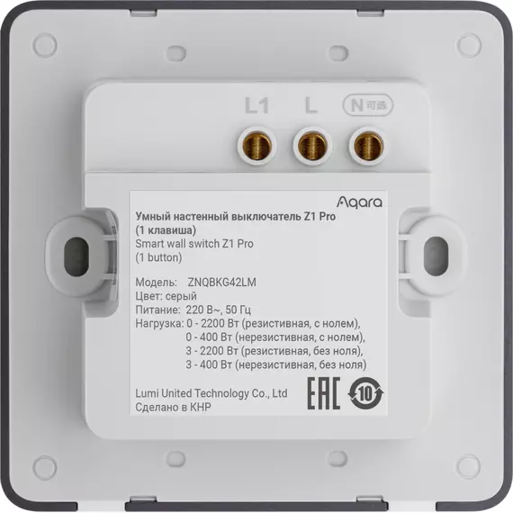 | Комплект поставки | Умный настенный выключатель Aqara Z1 Pro, Винты для крепления, Руководство пользователя |