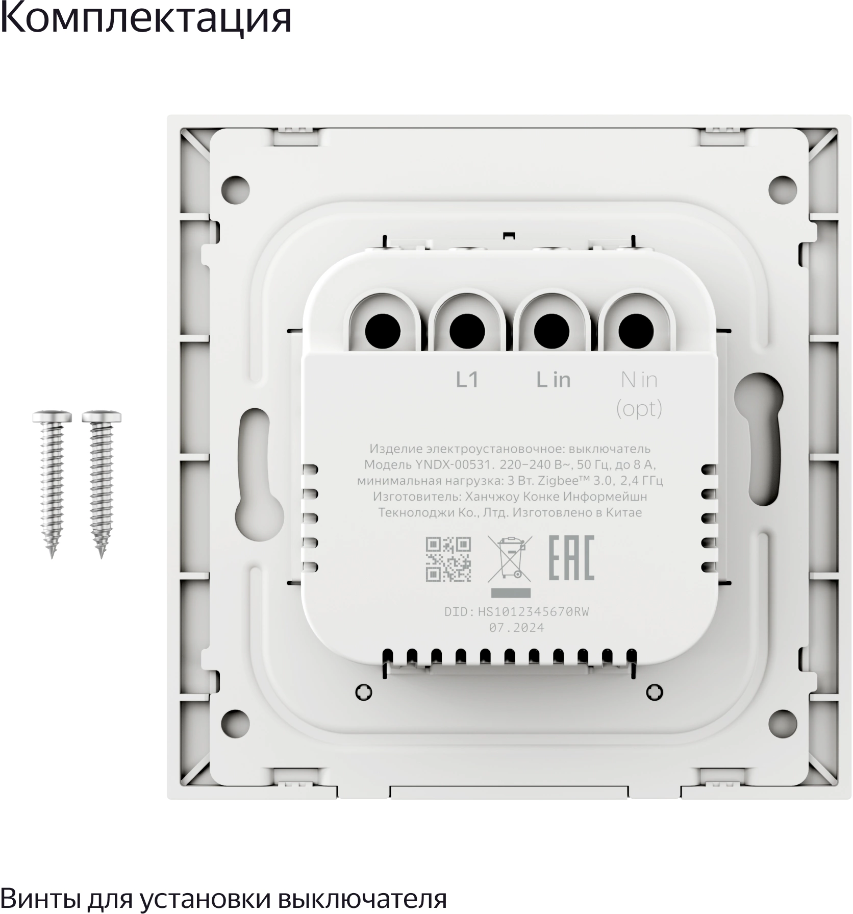 Умный выключатель Яндекс YNDX-00531 1-нокл., универсальный, белый