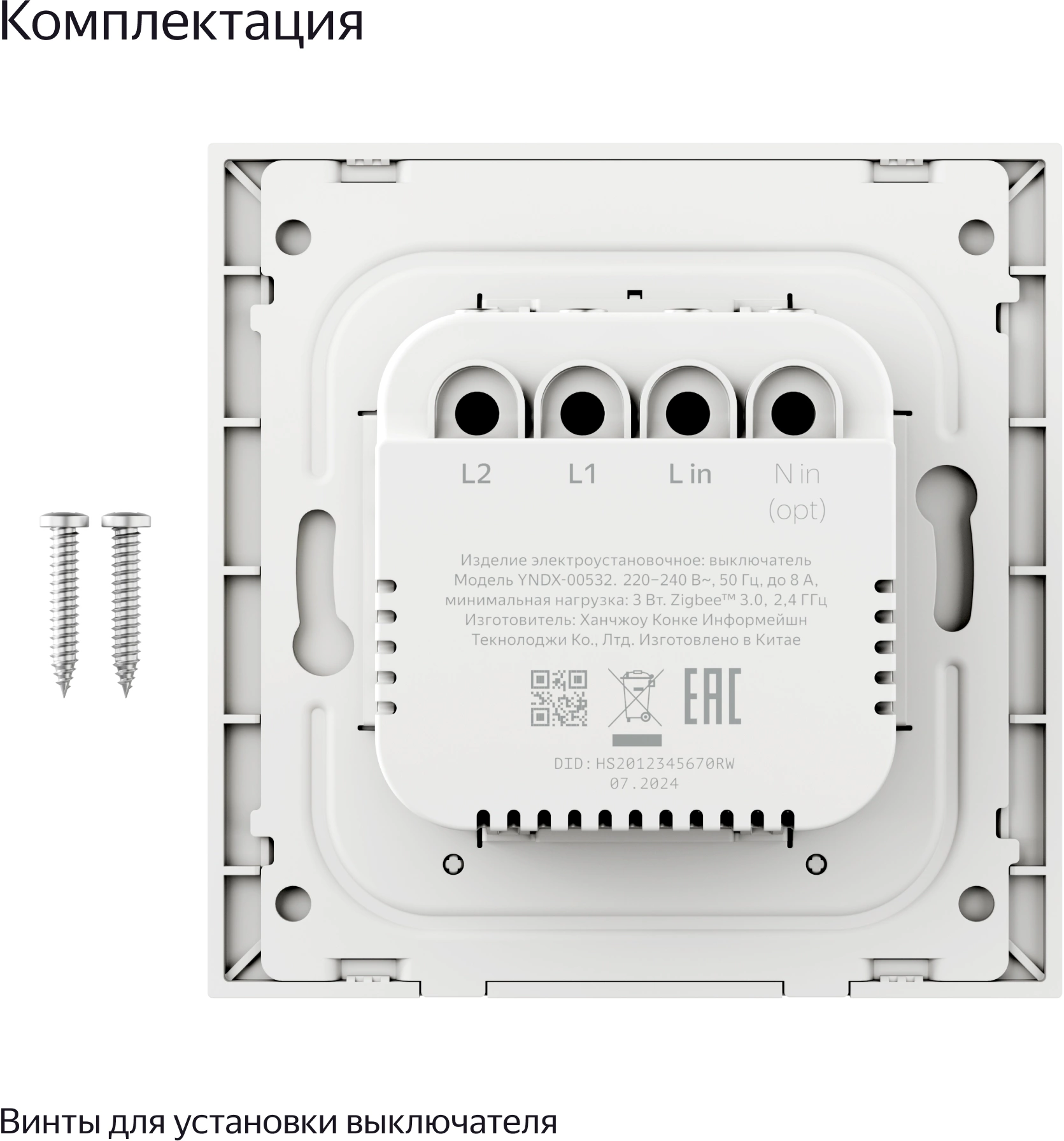 | Комплект поставки | выключатель, комплект винтов, инструкция |