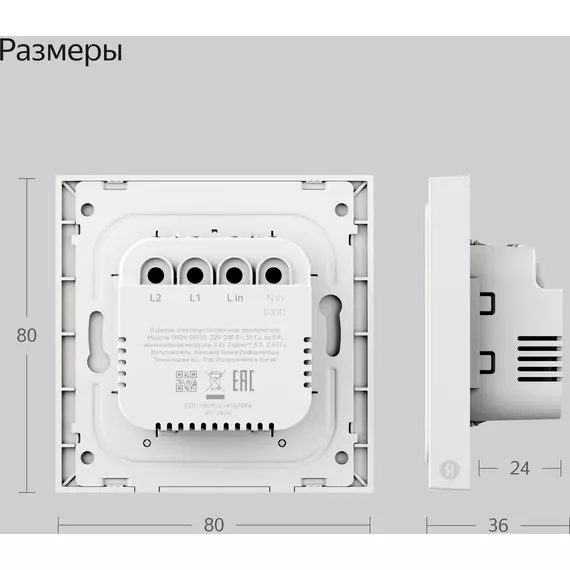 Умный выключатель Яндекс YNDX-00532 2-хкл. универсальный белый