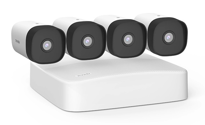 Комплект видеонаблюдения с PoE на 4 канала TENDA K4P-4TR видеорегистратор PoE HD, 4 цилиндрические камеры PoE HD