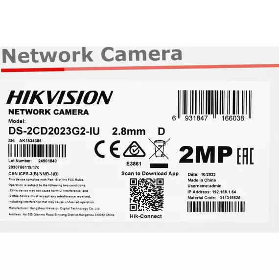 Наличие товара Hikvision DS-2CD2023G2-IU(2.8MM)(D)