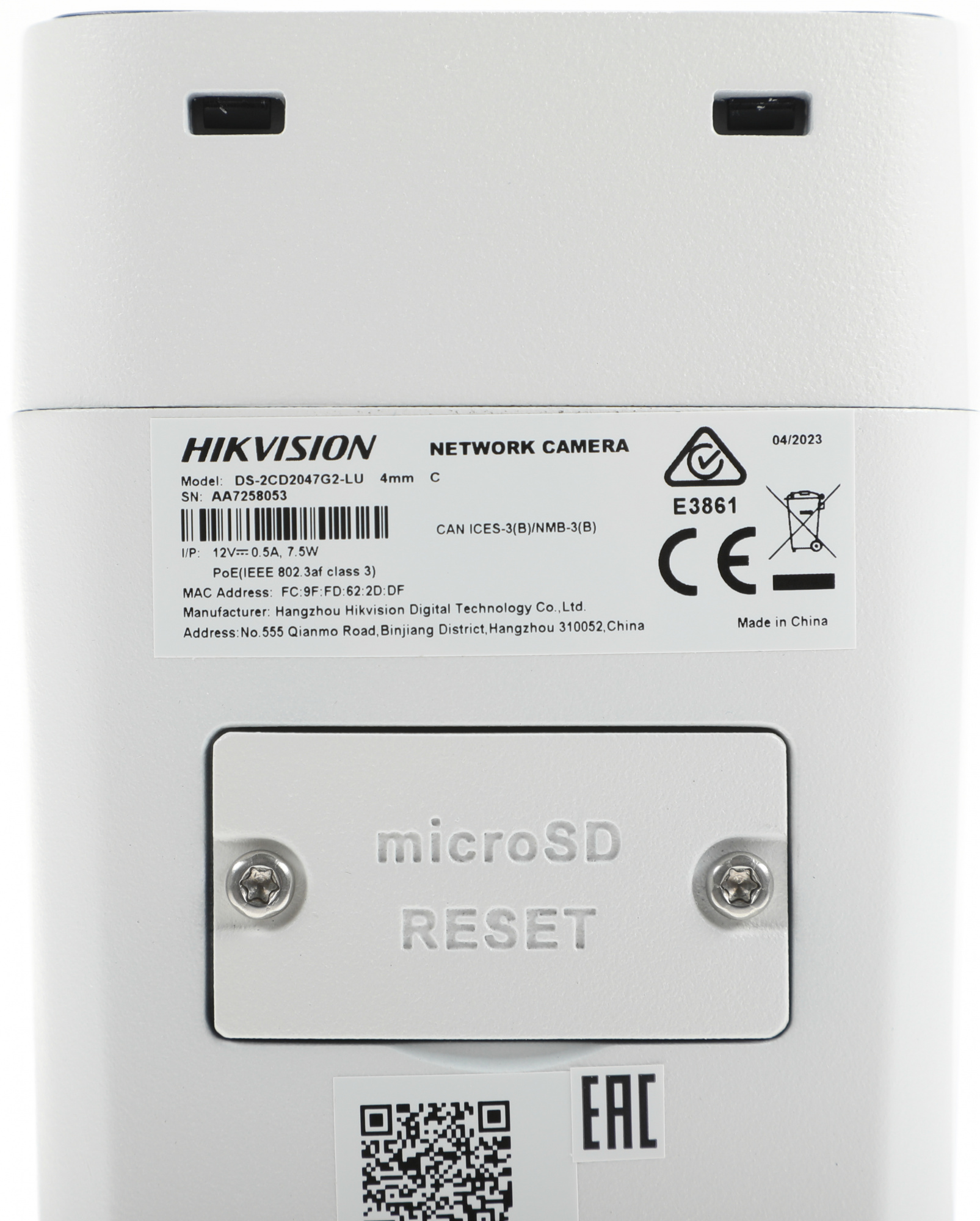 | Особенности съемки | ИК подсветка, компенсация засветки, режим день/ночь |