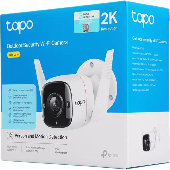 | Особенности | Нет облачного сервиса Таро;автоматическая сигнализация; в комплекте: камера, адаптер питания, монтажный шаблон, дюбели и шурупы, водонепроницаемая прокладка, гермоввод, руководство по быстрой настройке |