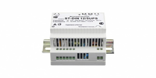 Стабилизированный источник питания на DIN-рейке с функцией подключения АКБ для питания аппаратуры напряжением 12В.