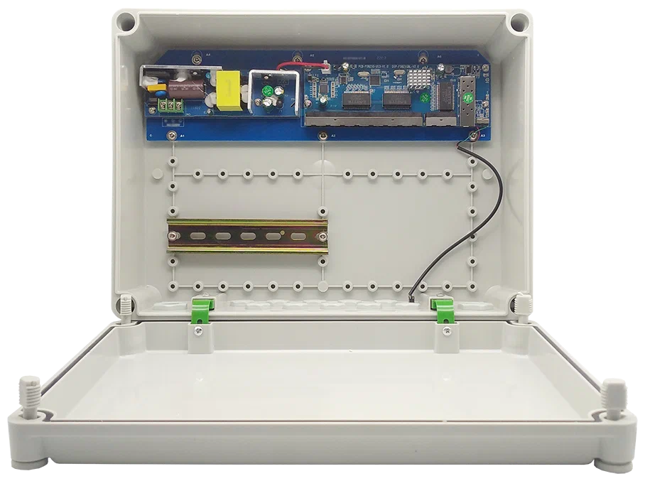 8-ми портовый, уличный для обеспечения проводных сетей напряжением 48В, PoE порты: 8 х (10/100 Мбит/с), UpLink порты: 2 х (10/100/1000 Мбит/с), SFP порты: 1 х (10/100/1000 Мбит/с)