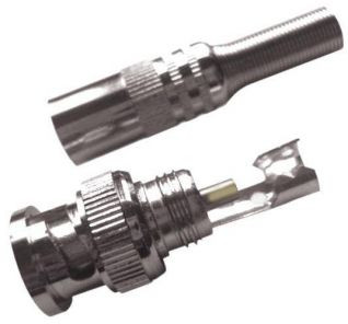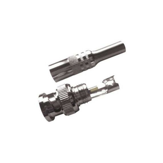 Разъем BNC под винт. Представляет собой металлический коннектор или разъем с байонетным механизмом типа BNC (Bayonet Neill Concelman). Имеет два токопроводящих контакта: центральный и боковой. Для предотвращения излома кабеля, на конце разъема имеется предохранительная пружина. Состоит из двух частей, которые соединяются с помощью резьбового соединения.