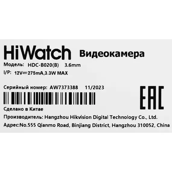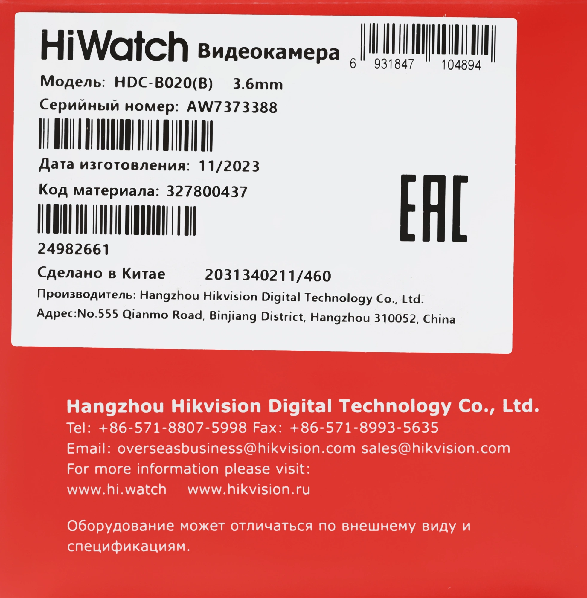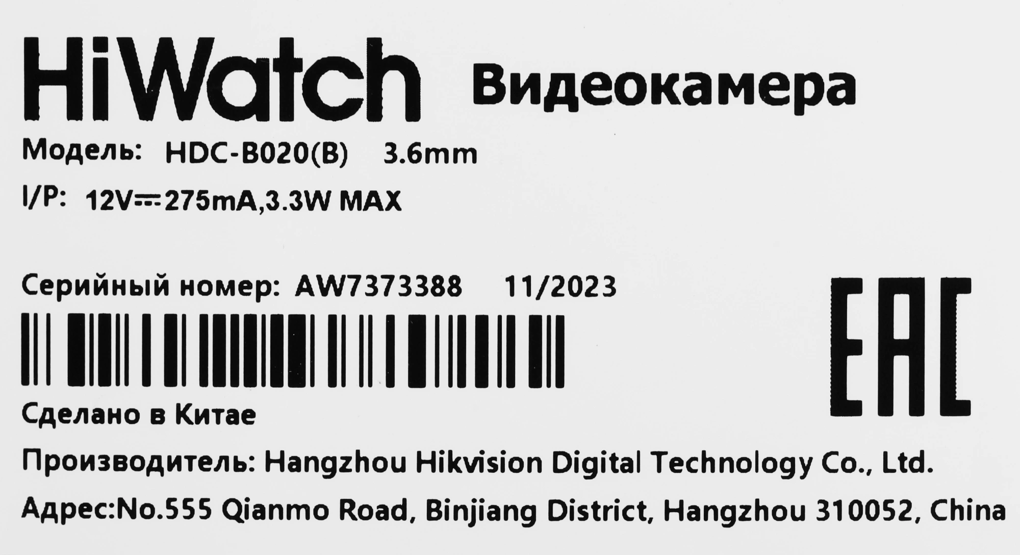 Описание HiWatch HDC-B020(B)(3.6MM)