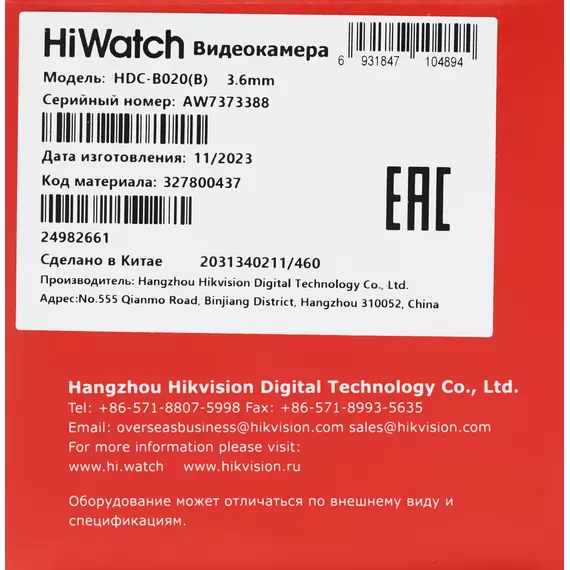 Наличие товара HiWatch HDC-B020(B)(3.6MM)