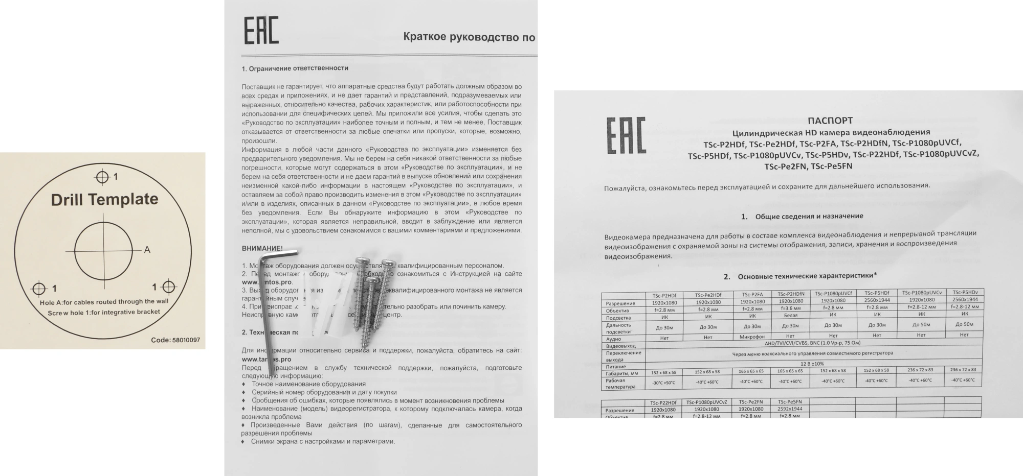 | Особенности | Переключение режимов работы видеокамеры осуществляется через коаксиальное управление совместимого видеорегистратора. |