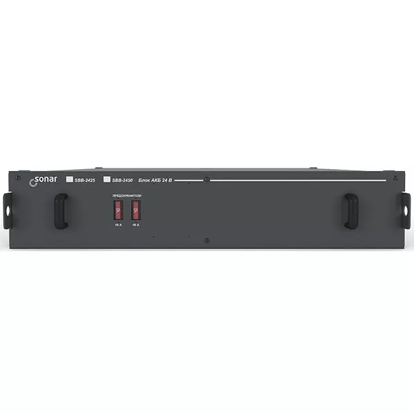 Блок АКБ 24В. Заменяемые АКБ 12 В, 5 Ач, количество элементов в корпусе - 18 шт. Блок АКБ предназначен для обеспечения резервным питанием (24 В) основного и вспомогательного оборудования 19'' стойки системы оповещения, производится в металлическом корпусе форм-фактора 19'' RACK высотой 2U
