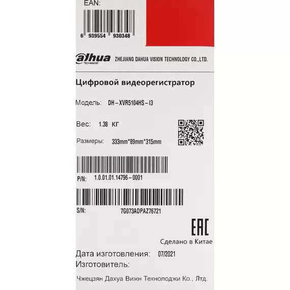 Наличие товара Dahua DH-XVR5104HS-I3